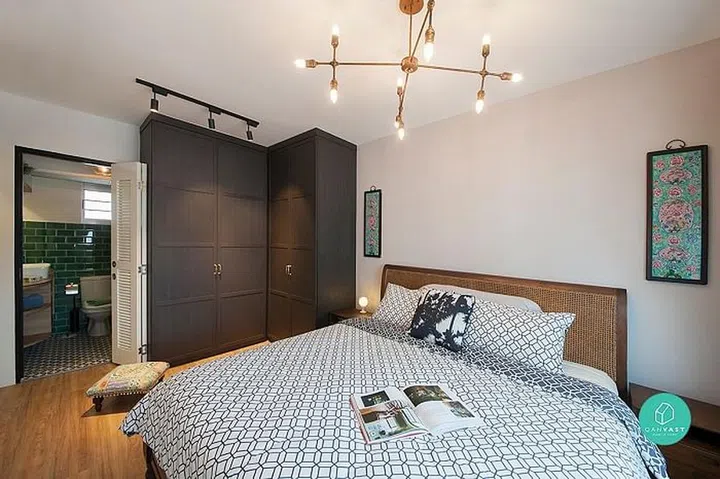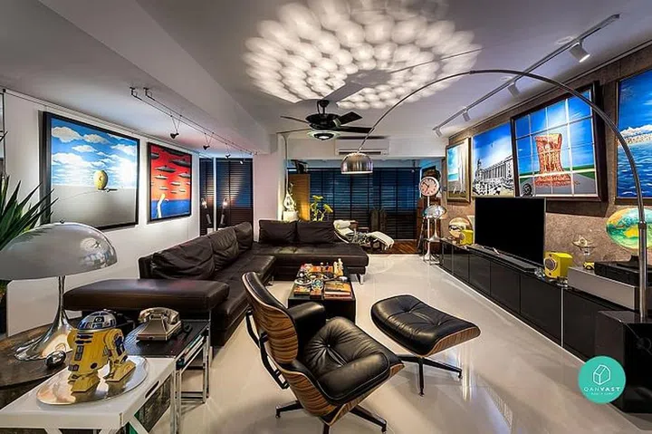This BTO flat in Telok Blangah Heights channels a retro vibe from floor to window, with simple wooden furniture, an old school standing fan and roller blinds. It’s clever use of lighting sets it apart, and gives the home showroom appeal.