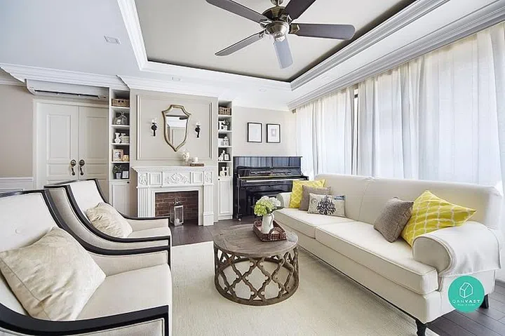 If you love this cosy and classic style, it’s easier to achieve than you think. The necessary details include wainscoting panels, crown moulding and a fake “fireplace”, brought together in muted neutral shades that you won’t get tired of.
