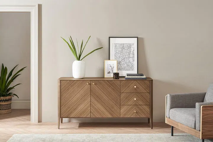 As the host, you’re going to need somewhere to keep all the board games and extra cups within easy reach. A sideboard is the perfect addition to your living room since it doesn’t take up much floor space, but provides plenty of extra storage. The Charlie Sideboard, for instance, has three drawers and a deep cabinet space large enough to store plenty of party necessities in. Its mid-century modern design with a chevron finish adds a striking accent to the space, too.