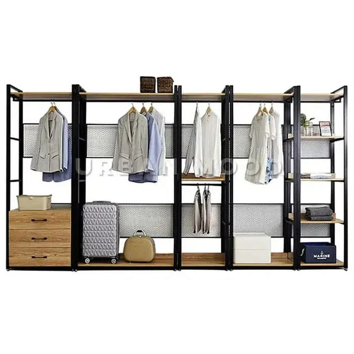 An open wardrobe is useful and functional as a coat rack when they are placed in entryways to hang any bags and outerwear. If you have the luxury of space, you can have an open wardrobe rack on top of your standard closed wardrobes to easily access your everyday wear. Open wardrobes are also a great addition to service yards and laundry rooms.
