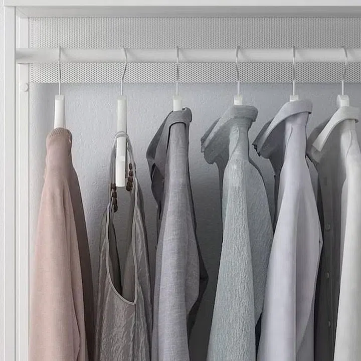 Talk about modular and flexibility in function, use the planner tool on IKEA website, and add on however many poles, shelves, and drawers to the ELVARLI wardrobe combination to boost the amount of storage you can have. You can easily personalise it and use the system in any space possible, even in the living room if you fancy.