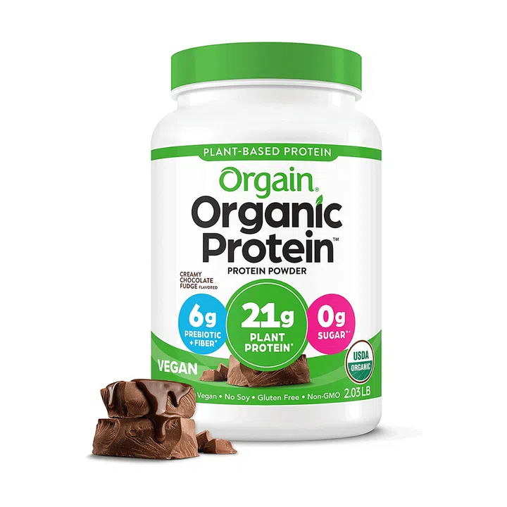 Suitable even for vegans, this plant-based protein powder contains 21g of protein and zero grams of sugar per serving. Use it to make protein shakes, smoothies, pancakes and more.