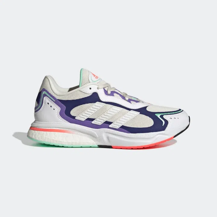 Run with more ease and power as this pair of running shoes is powered by Adidas' Bounce and Boost technologies. The shoe upper is also made with at least 50 percent recycled plastic.