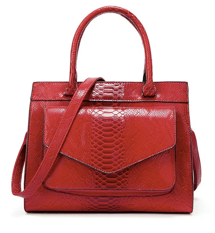 If you’re in need of a go-to date night handbag, this is just the right fit. Made from synthetic snake print leather and a shiny natural texture, this bright and boujee bag will grab anyone’s attention.