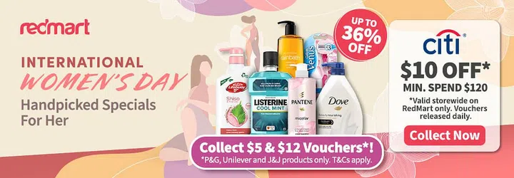 Speaking of stocking up on your favourite beauty essentials, Redmart is also pariticipating this IWD with its very own curated list of beauty must-haves. Grab your favourite body wash, mouthwash, feminine supplies, and whatnots, and enjoy up to 36% off your bill. For citibank members, you'll also get to enjoy $10 off with a minimum spend of $120 on your Redmart products.