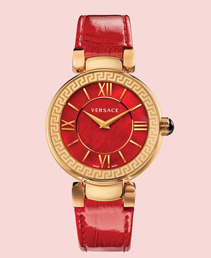 For a subtle touch of Italian glamour, consider the Leda watch (price unavailable) from Versace. This elegant classic features Roman numerals and a Greek key bezel in a feminine 38mm size. Considering the brand’s rigorous Swiss certifi cation criteria, you can trust that this will be a worthwhile investment.