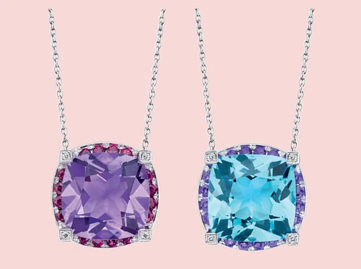 Want to take your festive greetings a step up? Say it with a stone – in this case, a precious one from Mauboussin. The Couleur d’Amour pendants ($1,990 each) have multicoloured gems on white gold chains. The amethyst pendant, which symbolises protection, is paved with rubies; while the blue topaz variation, symbolising love, is paved with amethysts.