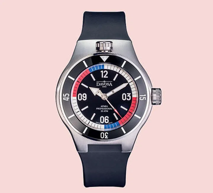Sporty men will love the Davosa Apnea Diver Automatic (from $1,650). The Swiss-made timepiece is up for the extreme challenges of diving – it is watertight up to 20 ATM (a depth of roughly 200m) – and has a case that can be unscrewed and raised for easy viewing underwater.
