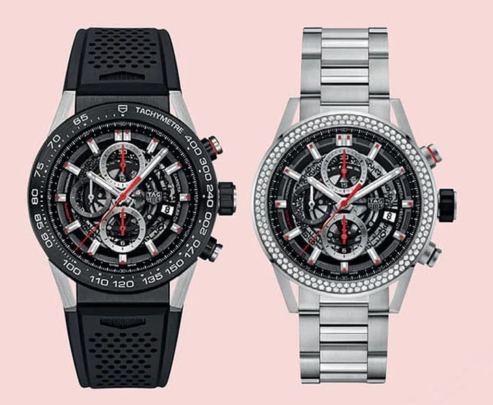 A great couples’ gift would be this matching pair of Carrera Calibre Heuer 01 chronographs. The signature watch from the Swiss manufacture comes in a men’s version ($7,250) with the complex skeletonised dial that has made it a classic, while the women’s ($13,000) is dressed up with 1.09-carat diamonds.