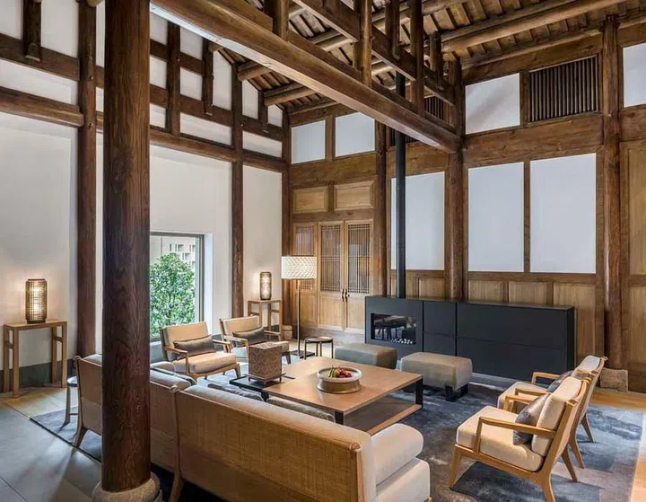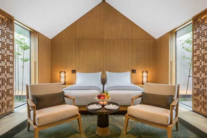 In addition to the Antique Villas, Amanyangyun homes 24 newly created Ming Courtyard Suites that harmoniously complement their historic counterparts, offering guests expansive, light-filled bedrooms and living areas, characterised by refined wooden interiors.