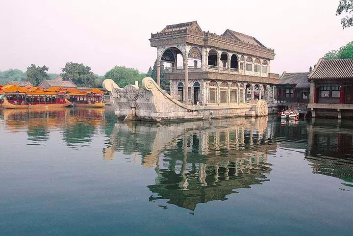 As the scent of magnolia blossom and the sound of Cantonese opera mingle in the air, it is hard to believe the urban sprawl of 21st-century Beijing is just a short distance away; The Great Wall, the Temple of Heaven, the Marble Boat (picture before), Xing Bridge and beyond a dense network of narrow hutongs, the Forbidden City itself are all easily reached.