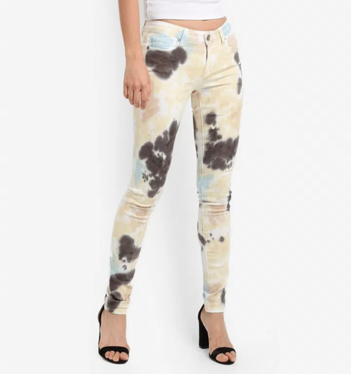 Who would have thought denim could be this cool? These dark brown and mushroom stretch-denim skinny jeans are a chic way to add tie-dye to your wardrobe without going too OTT. A great pair of pants that is versatile enough for both the office and your weekend shenanigans, try teaming these with black slides and a bardot black top for a casual yet stylish effect.