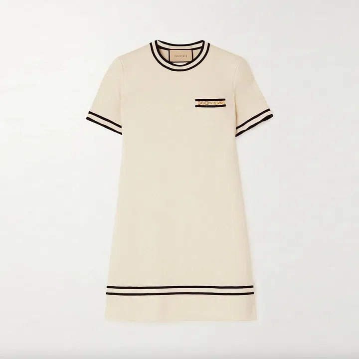 Boasting a timeless appeal, this Horsebit wool-jacquard mini dress by Gucci is a statement piece to have that is sure to make a sartorial statement. Crafted with wool-jacquard, the dress is tipped with contrasting stripes and embellished with the heritage 'Horsebit' at the chest.