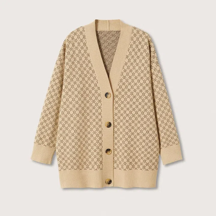 Adding some prints into your look is the easiest way to show that you've put real thought into your outfit. Take, for instance, this geometric print knit cardigan from Mango.