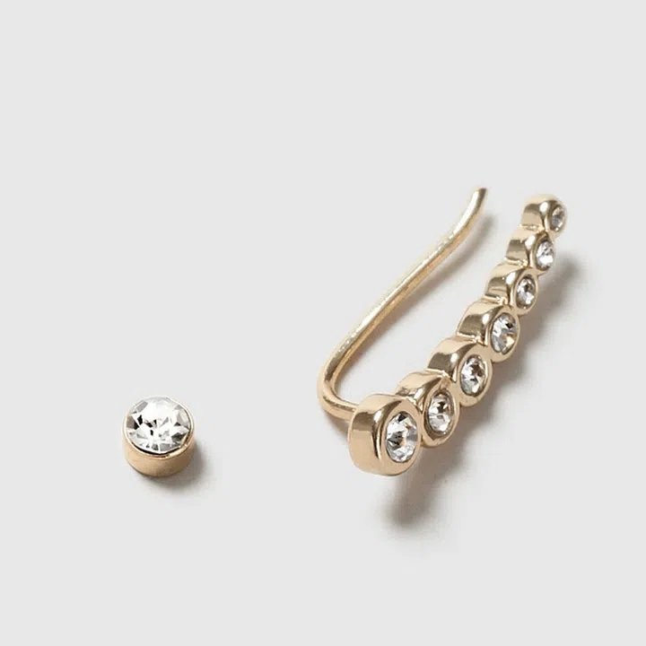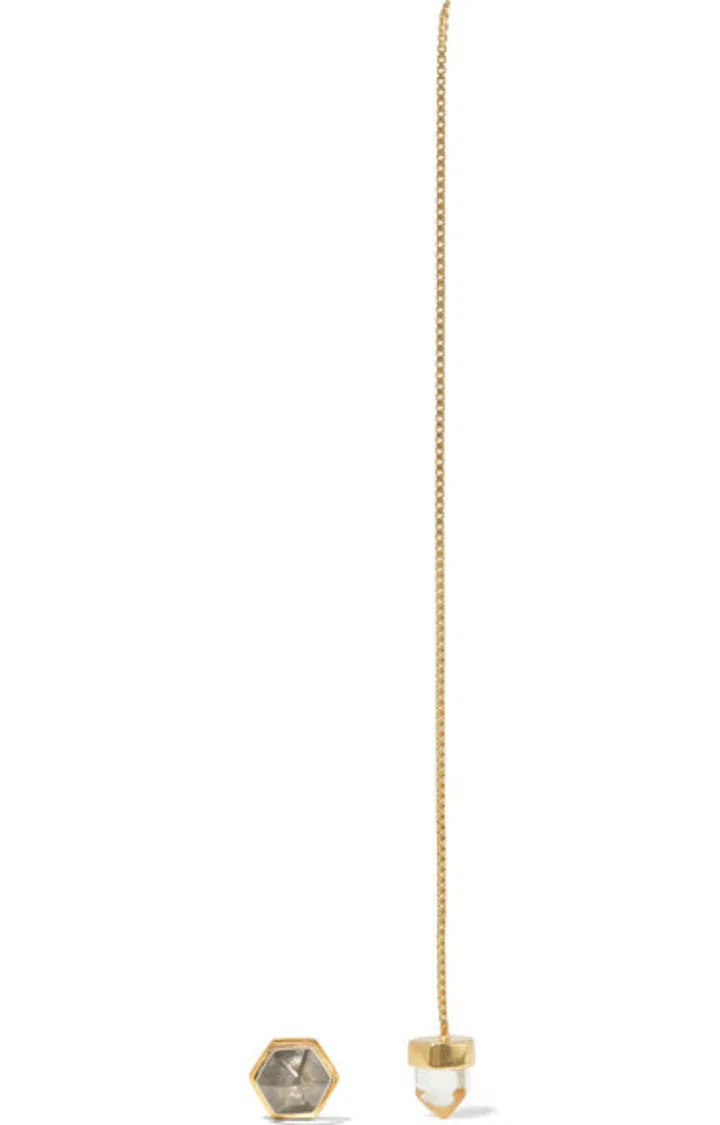 The asymmetric earring trend is all the rage, and this gold-plated crystal mismatch set is a striking way to adorn your ears as the long linear earring highly contrasts with a stud. Photo: Net-a-Porter
