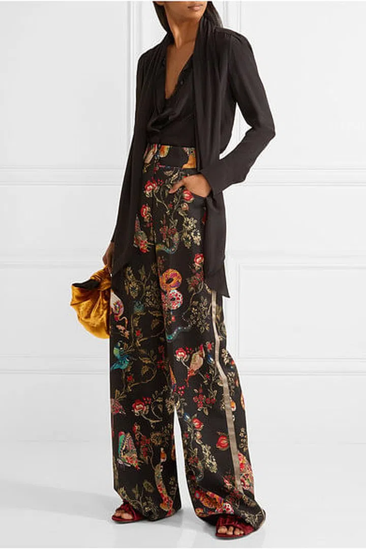 Etro Grosgrain-trimmed printed wool wide-leg pants, $867 from Net-a-porter.com.