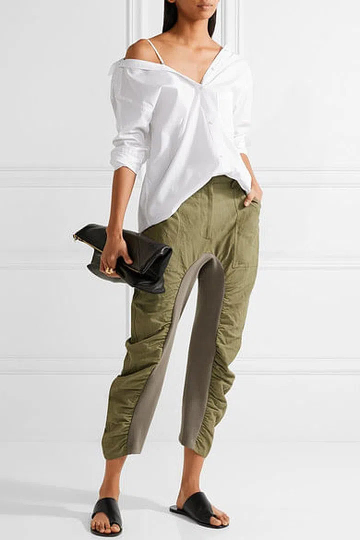 Theory Off-the-shoulder cotton-poplin shirt, $255 from Net-a-porter.com.