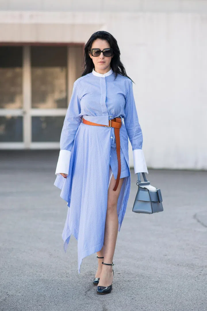 When in doubt, go with a striped shirt. As the classic go-to piece in any working wardrobe, we recommend playing it up with a fun pleated knee-length skirt and some statement jewellery for added bling.