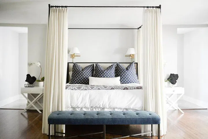 Every elegant bedroom should have an accent chair or ottoman at the foot of the bed. Make your ottoman work harder and get one with storage space.