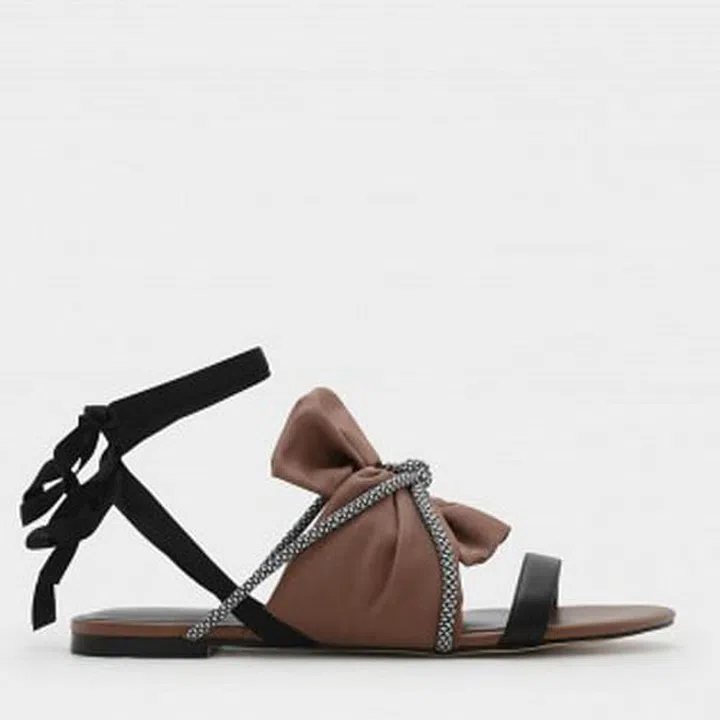 Knot details, lace up ankle straps and a statement brown bow - all these elements set the tone for a laidback, arty feel as embodied by these sandals. Contemporary and modern, these avant garde sandals will look great when teamed next to earthy, neutral tones and relaxed silhouettes.