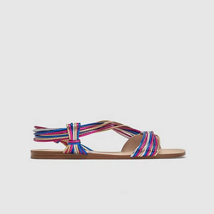 Featuring metallic straps in a bevy of complementing shades: electric blue, fuschia and gold. If you’re looking to dive into the metallics trend in a subtle way, these sandals will do the job for you with its bold and glamorous yet wearable design. They’re also festive enough for beach parties and music festivals.