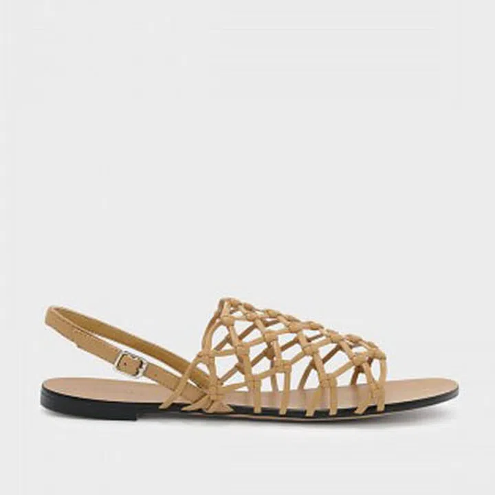 The popularity of netted bags and woven raffia-type handbags has transpired into the form of sandals with this number: a pair of sandals featuring a knotted weave design in a trendy camel colour. Summer, carefree and playful, these sandals are failsafe options that work for all your off-duty occasions, from a casual stroll to Sunday brunch.