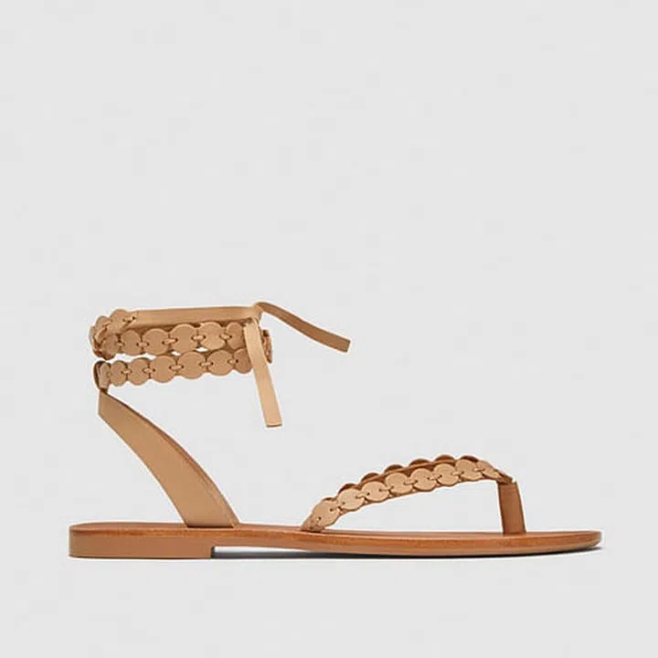 We’ll always love a good pair of beige-coloured shoes — they’re timeless, versatile and chic. These ones feature a feminine strap design composing of circles cut from leather and stitched together like a row of beads. Simple and contemporary, these sandals also play with the “thong heels” trend rocked recently by Kim Kardashian with its two-prong front strap.