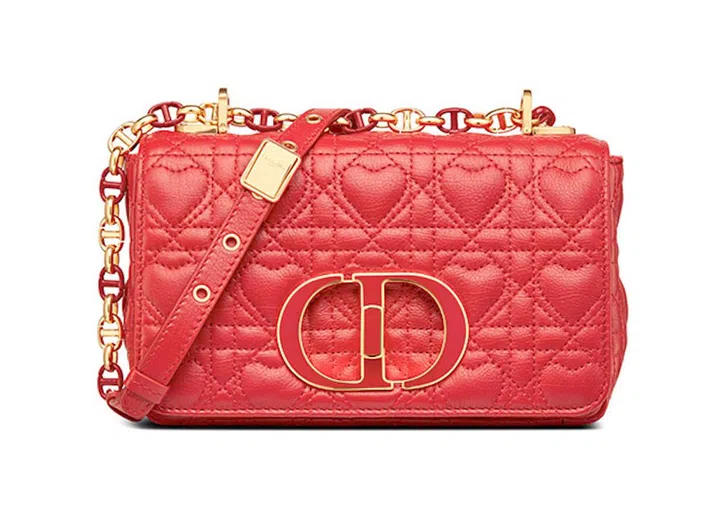 This heart-shaped patterned leather bag comes from Dior's limited Dioramour collection created for this year's Chinese Valentine's Day (Qixi Festival). The quilted flap features the CD logo clasp, inspired by the closure of the Christian Dior perfume bottle.