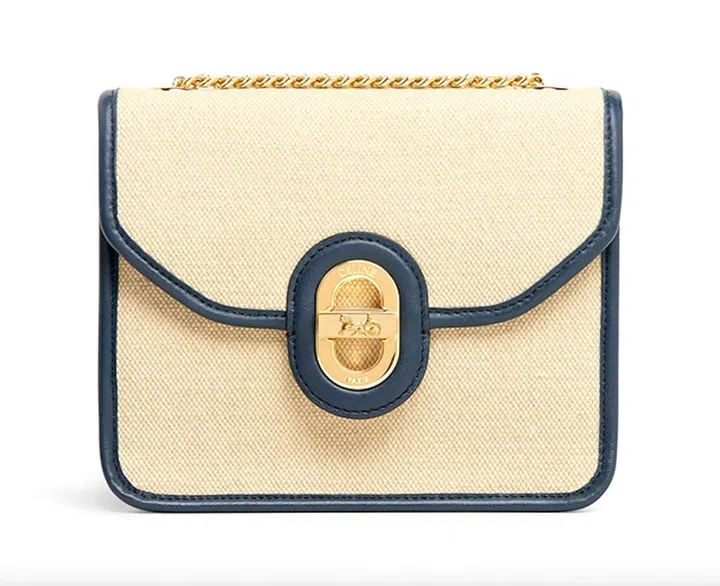 The clean colour scheme is complemented with the textile and calfskin fabric as well as the gold buckle. The bag has a vintage feel while exuding modern sensibilities.