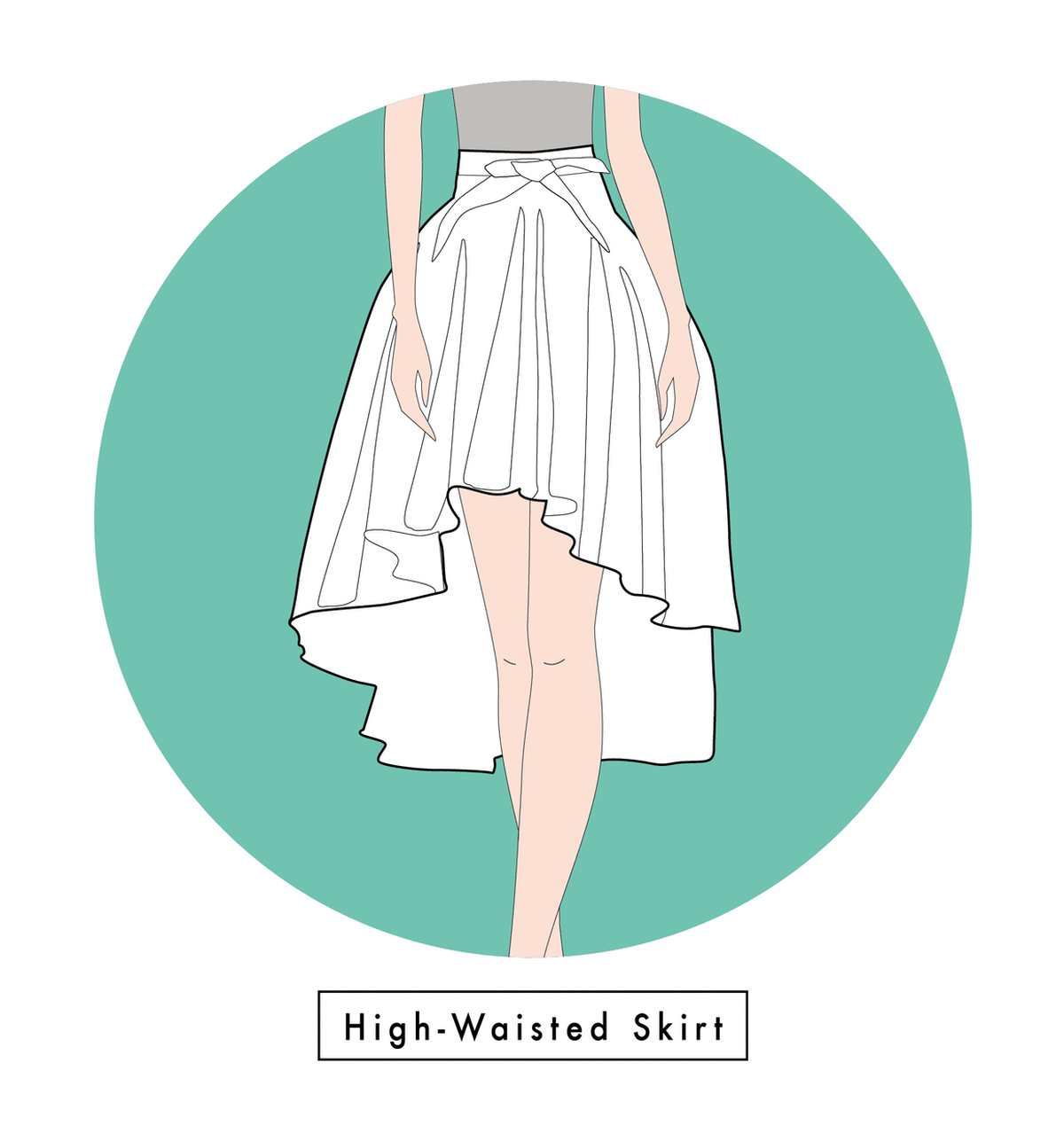 They often (but not necessarily) have embellishments like bows or buttons at the waistline for extra emphasis. Avoid if you are top heavy as the large bust will only get accentuated by a high-waisted skirt.