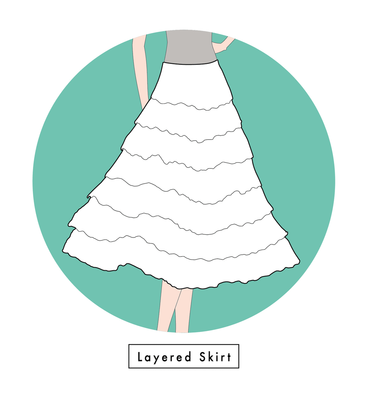 Just as the name suggests, this skirt resembles the shape of a tulip - turned upside of course (let’s not get silly now). The sides dip lower than the front and it will usually have an overlapping piece of fabric at the front, to resemble tulip petals. Oh how adorable!