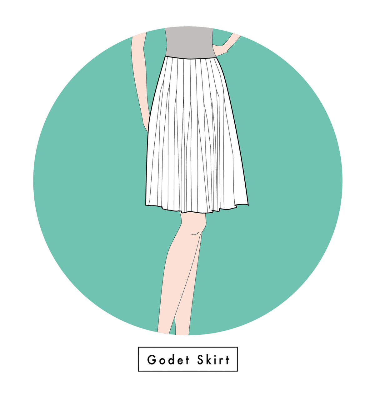 We promise you, we’re not! A Godet skirt has inserted panels to create depth and texture to the skirt, but are primarily an A-line basic shape.