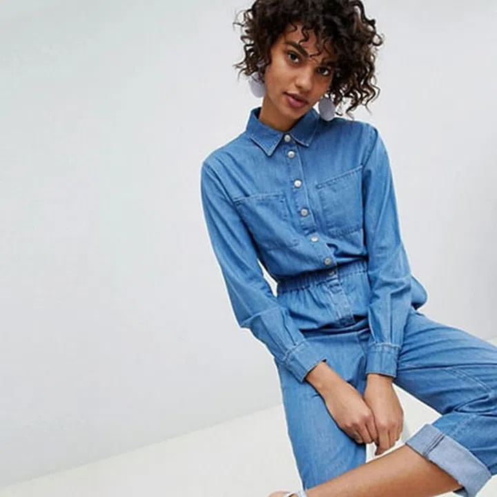 If you’re still a little unsure how to pair 2 item pieces, opt for a full denim jumpsuit instead and create the illusion of denim-on-denim. Look for styles that feature full sleeves and pants, as they tend to look more polished when you pair them with a pair of barely-there sandals.