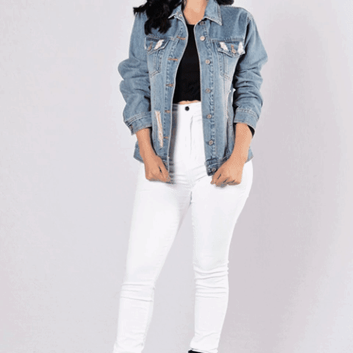 Denim comes in a mind-boggling variety of washes, from light acid to jet black. Work this variety to your advantage and use different shades to hide or flatter the different parts of your body. As a general rule of thumb, lighter washes will draw attention and make that body part look bigger (so think booty), while darker washes give a slimming effect. Dark denim jeans paired with a light denim top or jacket is generally a universally flattering combination.