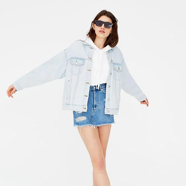 If you’re new to the world of denim-on-denim, ease into it by playing with your colours instead of going full on blue-on-blue right away. Think a chambray shirt with black jeans (paired with a popping pair of heels in bright colours), or the classic blue denim jacket with a pair of white jeans. Once you’re more comfortable rocking double denim, try pairing different hued blues together, like an acid-washed jacket with light-wash denim skirt.