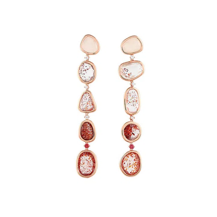 Intermezzo 18k rose gold plated sterling silver sapphire and quartz earrings, $920, available here.