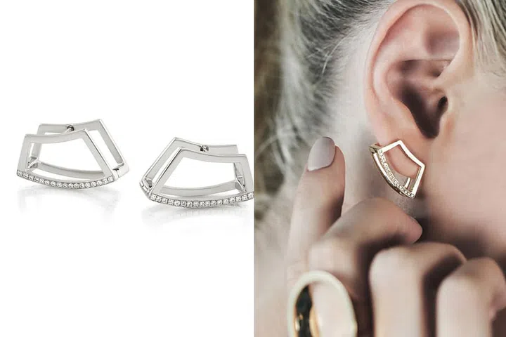 These hug the contour of your ear lobes thanks to a hinge mechanism, and add a cool yet subtle statement to your bridal ensemble.