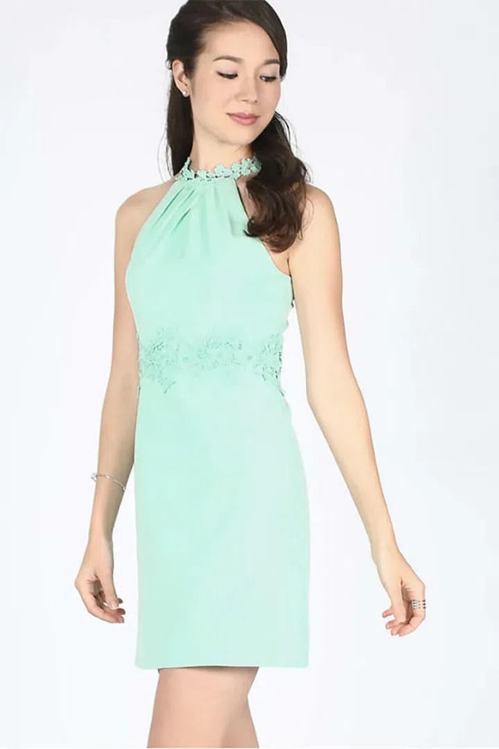 Simple and delicate, this lace adorned dress is fantastic for showing off long limbs or prominent collarbones. Accessorize with a small clutch or circlet for a dressier venue.