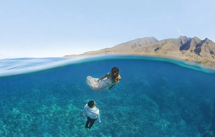 Inspired by their love of the ocean, Shawn and Adam Ravazzano, the husband and wife team behind Australia and Hawaii-based Love and Water Photography, capture surreal and captivating photos of couples underwater. They share their tips and tricks.