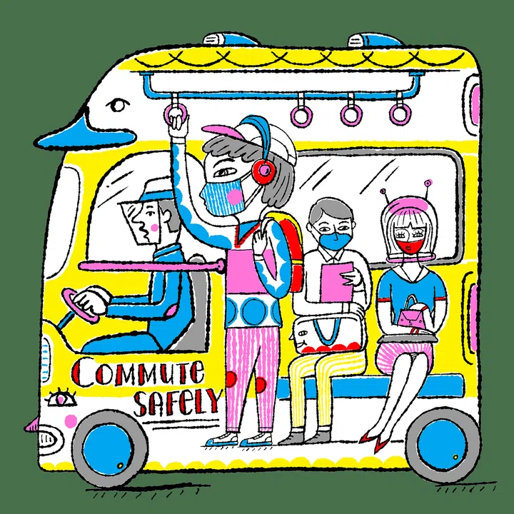 New norm on the public transport: mask on, volume off. This design depicts the "avoid talking on public transport" situation that everyone has to abide by right now.