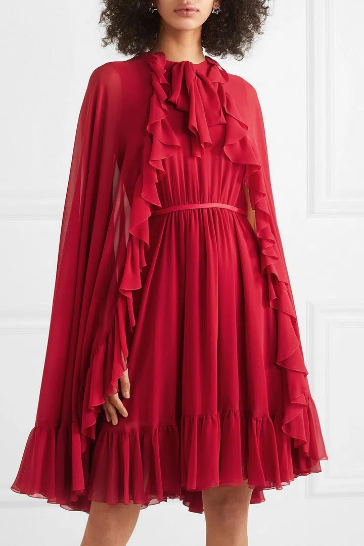 Giambattista Valli cape-effect ruffled silk-georgette dress, US$3,333.78 (S$4,521.66) from Net-a-Porter