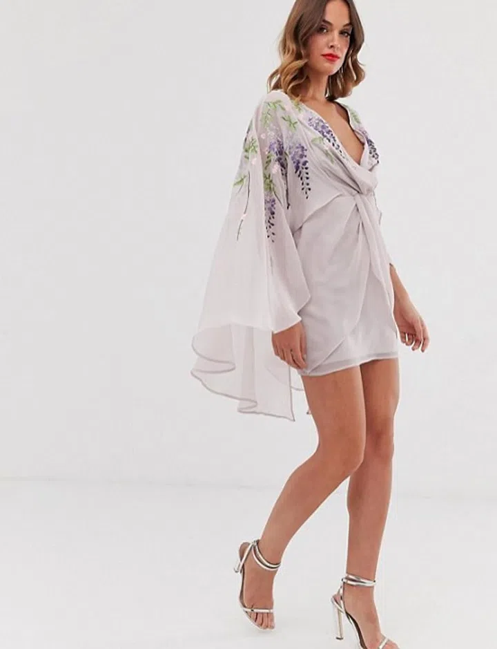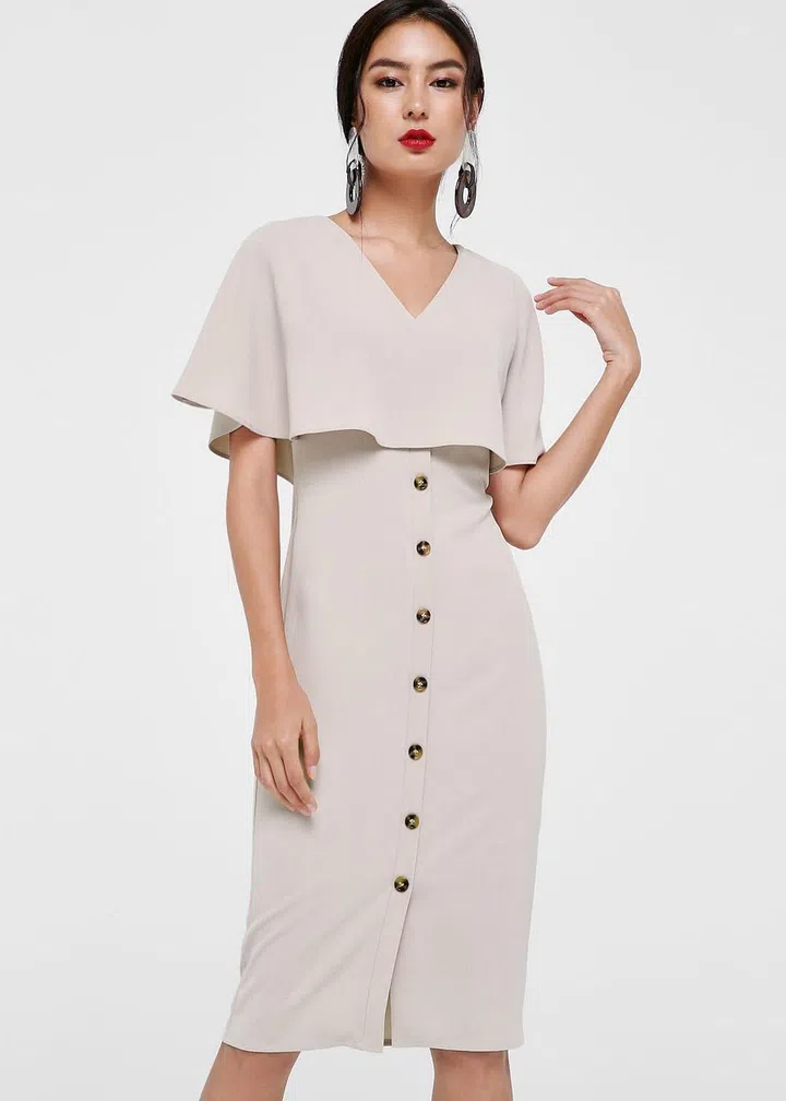 Besides wearing it to attend weddings, this Love, Bonito cape dress can double as a chic work piece. We especially love the interplay between the neutral light grey-brown colour and the tortoiseshell-esque buttons that trace down the front of your body.