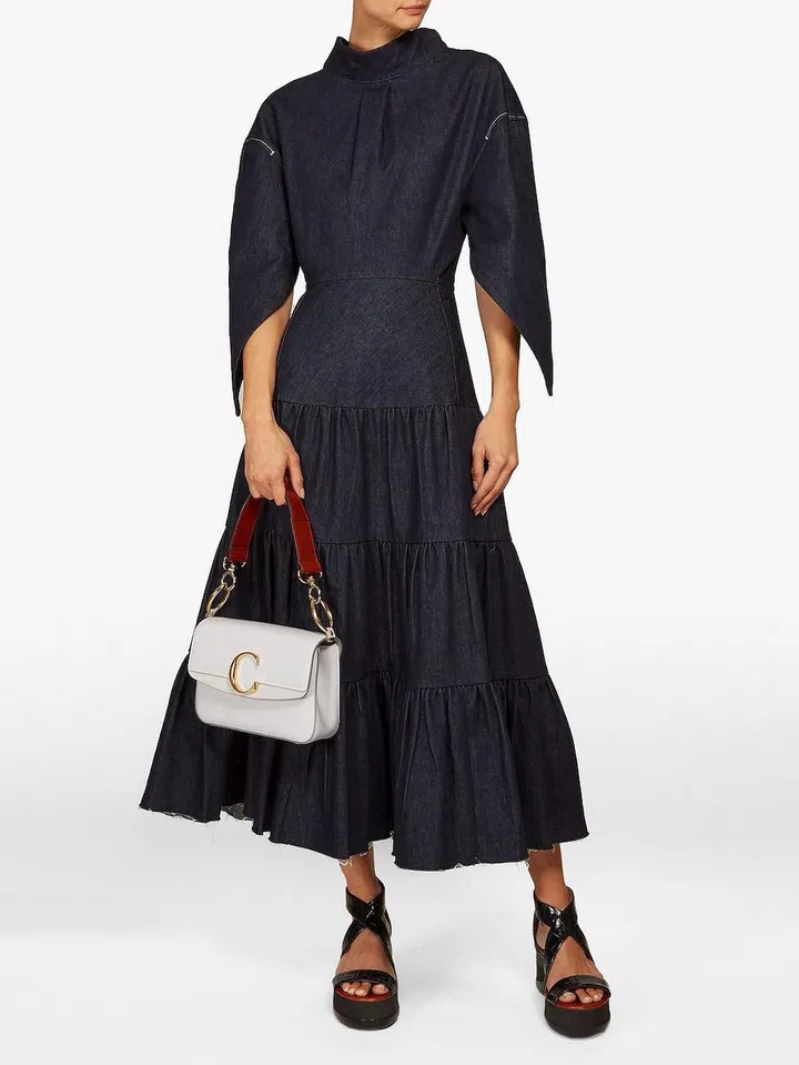 Denim is usually associated with casual weekend wear, but Chloé has elevated our favourite fabric with this sculptural design that features strong, raised shoulders and pointed sleeve details. Not only is the design fierce AF, it’s also really fashion-forward.