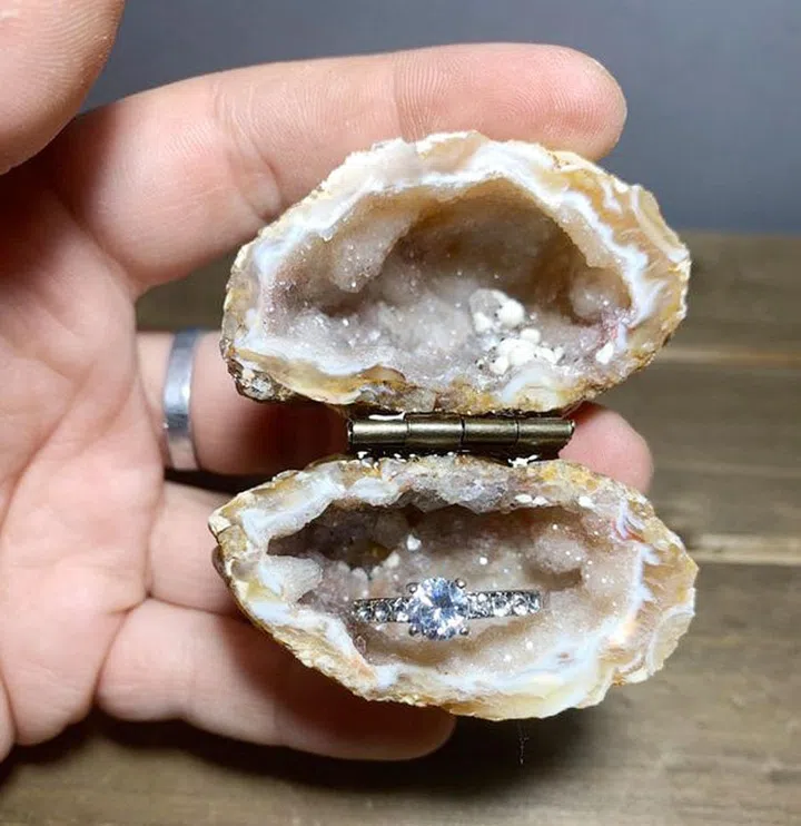 This geode ring box looks just like a precious stone (it actually is - it's crafted from stone, crystal, quartz, agate, geode, oco and ocho) that'll suit a seaside affair. Just be sure nobody leaves it behind (with your rings, eeks!) thinking it's part of the decor or one of the many pebbles strewn across the beach!