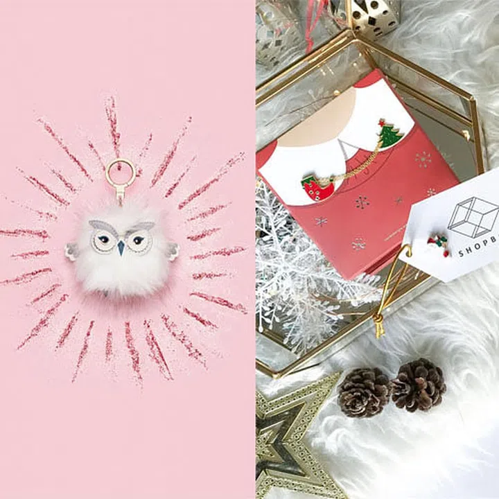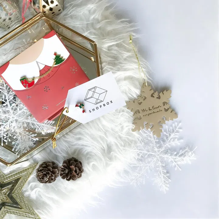 Spread the yuletide cheer to one of your BFFs with one of these jolly gift sets. This Christmas gift box named "Holly Jolly" consists of a unique Christmas card with pop-up designs, copper wired fairy lights, a candy cane, personalized ornaments, ear cuffs and enamel collar pins - both in assorted designs. These are all encased in a beautiful gold trimmed hexagon glass box signature to Shopbox - an exquisite design festive enough for the most magical time of the year. Psst... you can also get the giftee's name calligraphed on the box with an extra fee of $8.