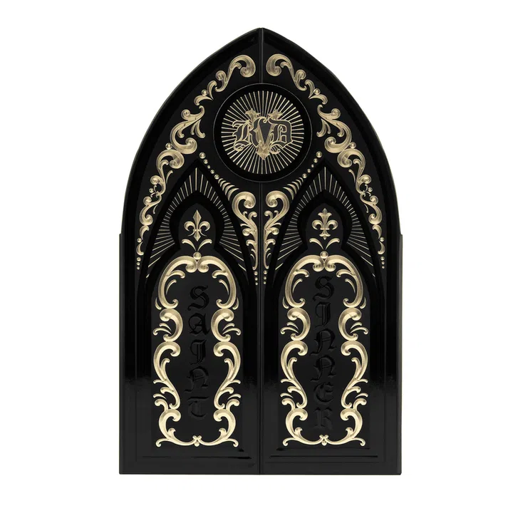Kat Von D’s beloved Saint + Sinner fragrance collection is reimagined in this ornately adorned, arch-shaped eyeshadow palette modelled after cathedral doors. The abstraction of its name is pretty simple, really; the 24 new, richly pigmented eyeshadows are divided into 2 sides with 12 saintly wearable tones on the left and 12 sinfully bold colour pops on the right.