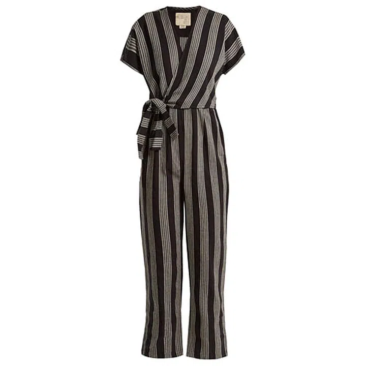 This black and white cotton striped jumpsuit is made in India – where all of Ace & Jig’s textiles are developed – with warmer climates in mind. Featuring a wrap bodice that secures with a coordinating tie, this stylish piece also has relaxed legs that are cropped for an easy yet flattering finishing. Great for off-duty days or on mornings when you don’t want to fuss over your outfit, this simple classic is something you’ll want to slip into on the regular.