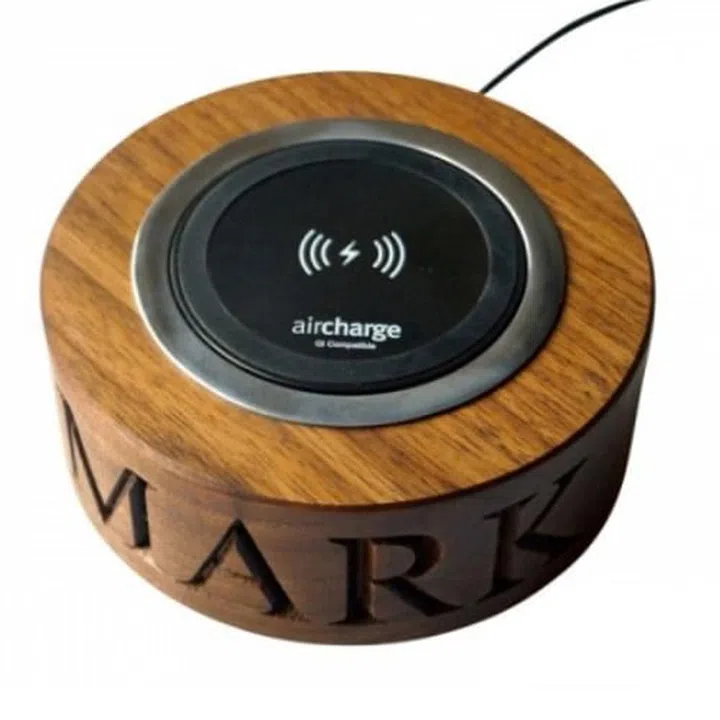 Wooden wireless phone charger by Make Me Something Special, $294.08 from Gifts Less Ordinary.
