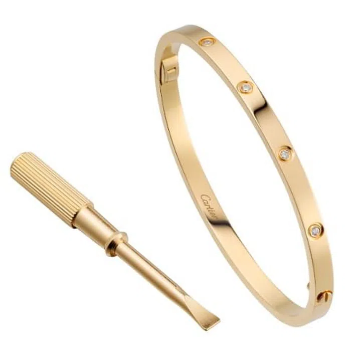 Cartier love bracelet in yellow gold, $8,650 from Cartier.