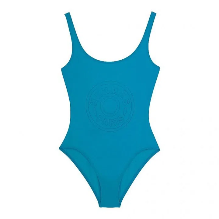 Slip into this elegant azure blue one-piece to catch waves or a dip in the pool.